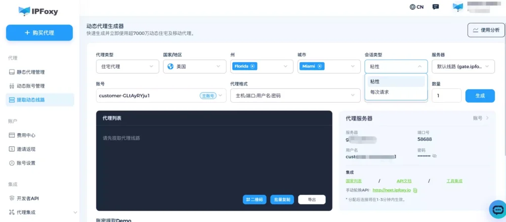 例如在实战中,IPFoxy动态IP支持自定义轮换间隔,为动态线路配置每次请求/粘性请求参数,并支持自定义30分钟-24小时轮换间隔。
